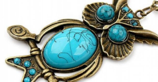 Retiazka s detailne prepracovaným vintage príveskom sovy je zdobeným prírodným kameňom – howlitom.