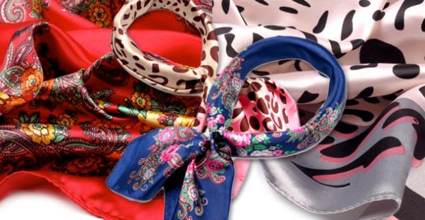 Elegancia a šarm pre dámy Luxusná saténová šatka s motívom kvetov či škvŕn