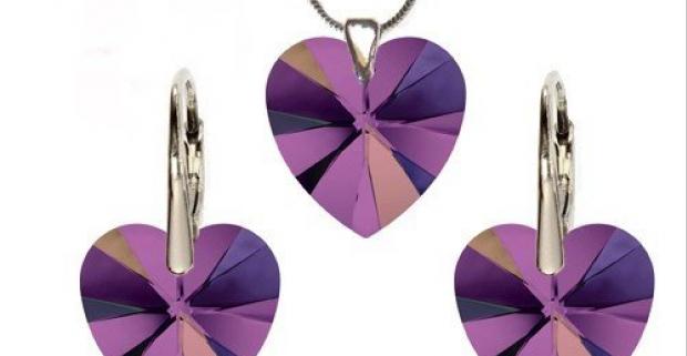 Jedinečný set Swarovski v tvare srdca. Luxusný a elegantný darček v rôznych farbách pre všetky vekové kategórie.