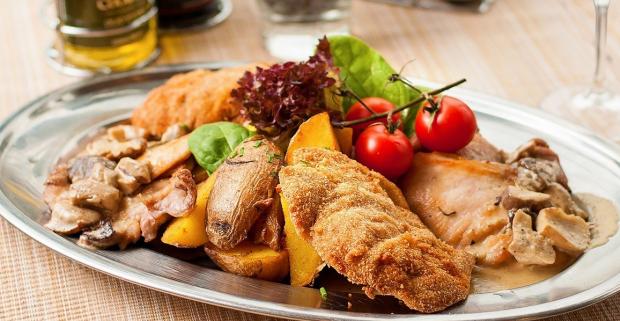 Výdatná mäsová misa v Cafe Restaurant Lokál vám ponúkne z každého rožku trošku. Bravčovinka, kuracinka a k tomu príloha.