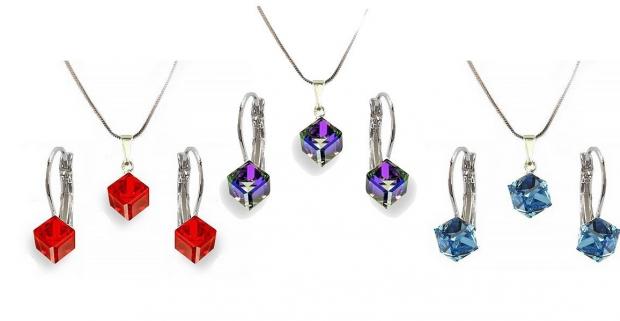 Luxusný set šperkov Swarovski, kryštál v tvare štýlovej kocky. Elegantné módne doplnky pre všetky dievčatá a ženy.