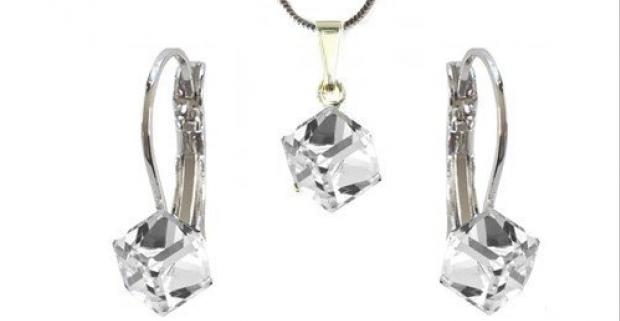 Luxusný set šperkov Swarovski, kryštál v tvare štýlovej kocky. Elegantné…