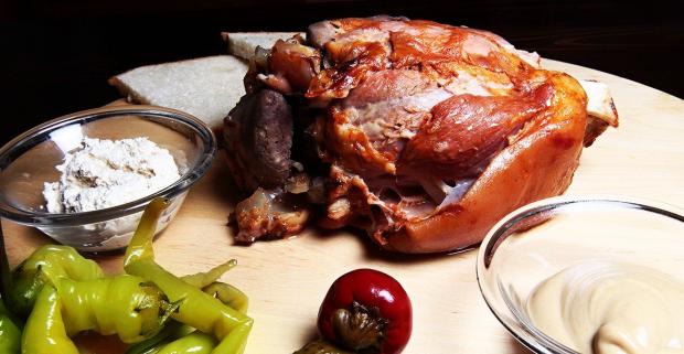 Pečené bravčové koleno s kyslou oblohou, chlebom a pivom alebo…
