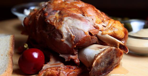 Pečené bravčové koleno s kyslou oblohou, chlebom a pivom alebo kofolou. Doprajte si skvelú a chrumkavú pochúťku.