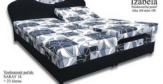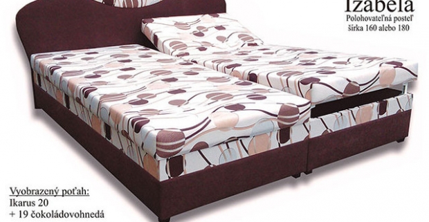 Čalúnená posteľ Izabela v modernom dizajne s vloženými zdravotnými polyuretánovými matracmi uloženými na polohovateľnom pevnom podklade.