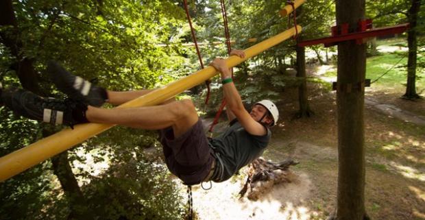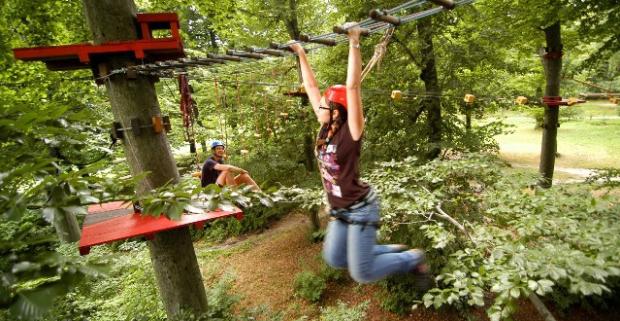 Vstup do lanového centra na Kolibe. Urobte si rodinný výlet a zdolajte množstvo prekážok v korunách stromov určených deťom i veľkým.