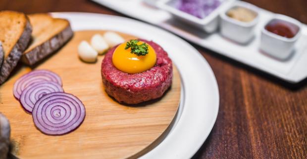 Doprajte si ozajstnú gurmánsku lahôdku v reštaurácii PorterHouse. 100 g tatarák z pravej hovädzej sviečkovice a 6 ks hrianok.