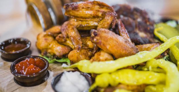 Misa špecialít v pivárni Bayerova Sladovňa. Voňavé marinované rebrá, chrumkavé BBQ marinované krídla, k tomu príloha a lahodný chlieb.