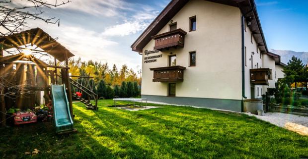 Dovolenka s jedinečným výhľadom na panorámu Tatier. Pobyt s polpenziou v rodinnom penzióne Raimund *** s najväčšou záhradou v Tatrách.