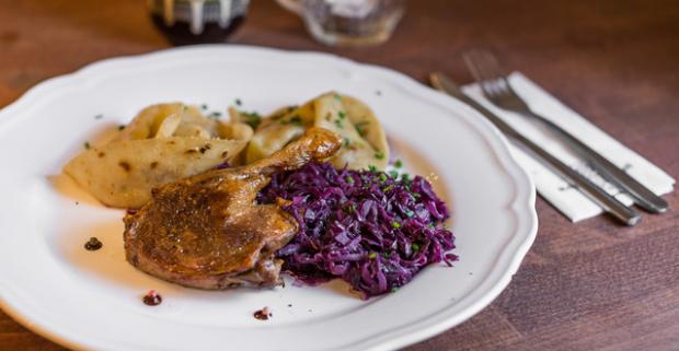 Slovenská piváreň vás pozýva na kačacie dobroty, plátky z kačacích pŕs s červenou kapustou a knedľou či kačacie stehno s kapustou a lokšami.