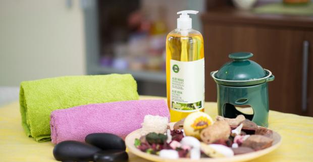 Ajurvédska indická masáž. Celotelová jemná masáž teplým olejom zvoleným podľa individuálnej konštitúcie a ročného obdobia.