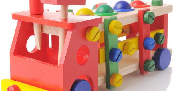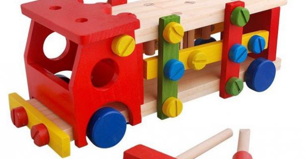 Farebné skladacie auto s kladivkom a skrutkovačom z dreva. Túto fantastickú hračku si zaručene obľúbi každý malý kutil.