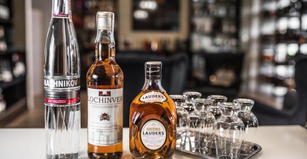 Fľaša škótskej whisky Lauder’s a Lochinver či Kalashnikov Original Vodka. Na špeciálne príležitosti i pre fajnové jazýčky na konzumáciu.