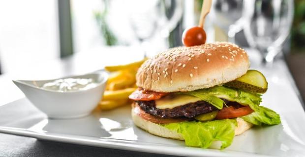 Texas Iron Burger s hranolkami a tatárskou omáčkou. Poctivá americká fastfoodová klasika v kombinácii s posedením v reštaurácii Sedmička.