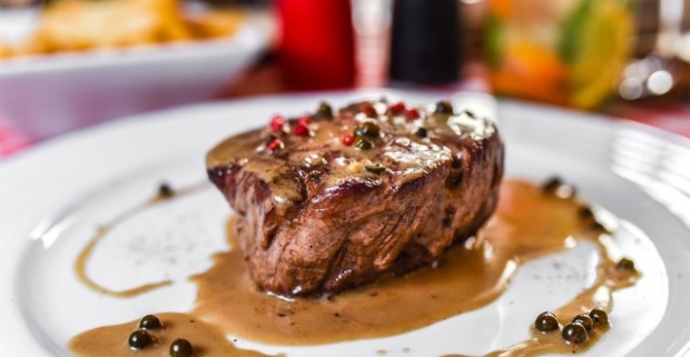 Steak z juhoamerickej sviečkovice a steakové zemiaky v reštaurácii Divná Múza.