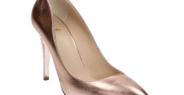 Kožené dámske lodičky v odtieni ružového zlata s jednoduchým a elegantným zvrškom.