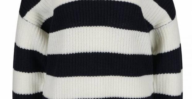 Modro-biely pruhovaný sveter s prestrihmi na ramenách značky VERO MODA…