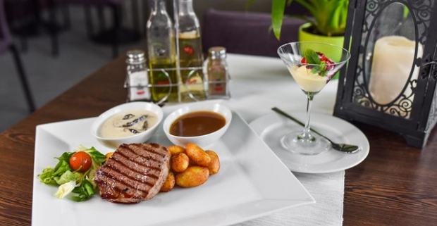 Pravý hovädzí iron steak + vanilková zmrzlina s horúcim lesným…