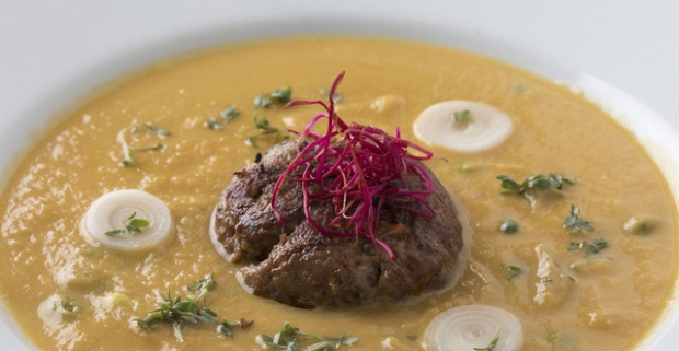 (Ne)tradičné slovenské menu s nápojom v malej a tak trochu punkovej reštike Kontakt.