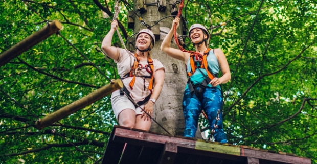 Vstup do lanového centra na Kolibe s množstvom prekážok pre veľkých aj malých.