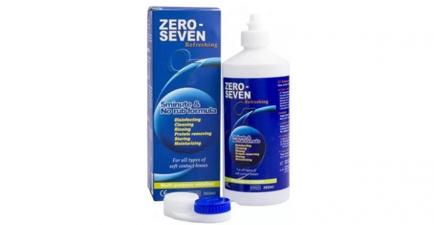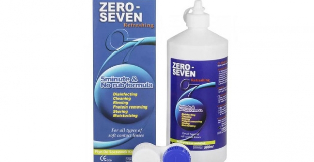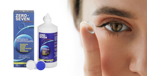 Ošetrujúci roztok Zero-seven na údržbu a starostlivosť o všetky druhy kontaktných šošoviek.