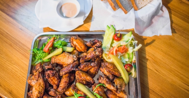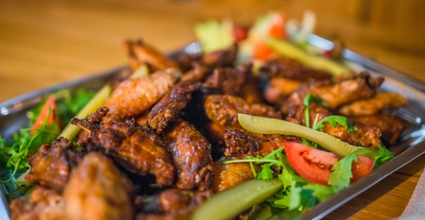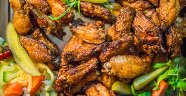 Chrumkavé grilované kuracie krídelká s prílohou v Babylon pube v…
