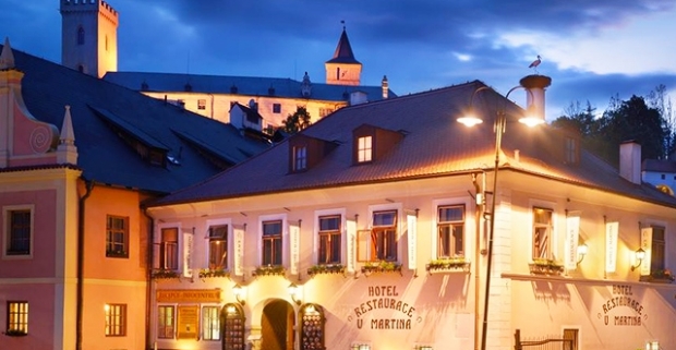Pobyt v historickom meste Rožmberk nad Vltavou s výhľadom na hrad, privátnym wellness a polpenziou.