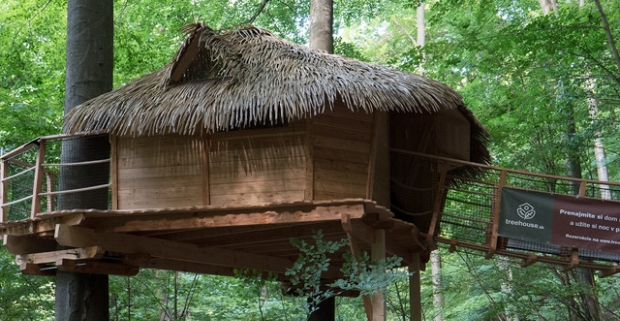 Rozprávková noc s raňajkami v domčeku v korunách stromov pre 4 osoby v Trenčianskych Tepliciach.
