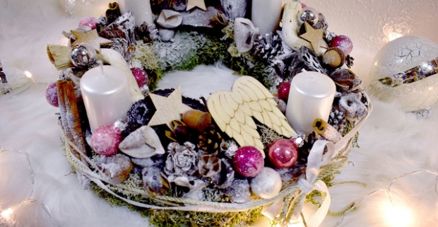 Vianočný adventný veniec z prírodných materiálov. Na výber z viacerých farieb.