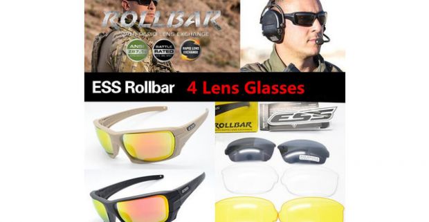 Taktické polarizačné okuliare Rollbar ESS so štyrmi vymeniteľnými šošovkami.