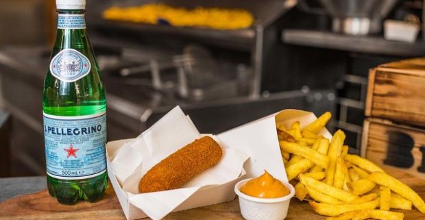 Skutočné domáce, čerstvé a veľké hranolky s omáčkou, nápojom a croquette vo Fresh Markete.