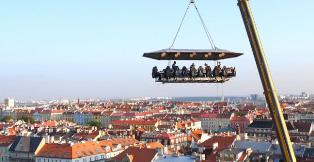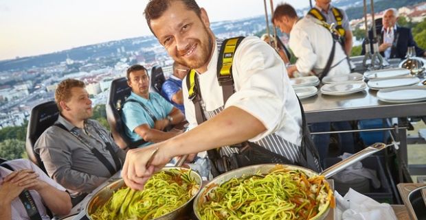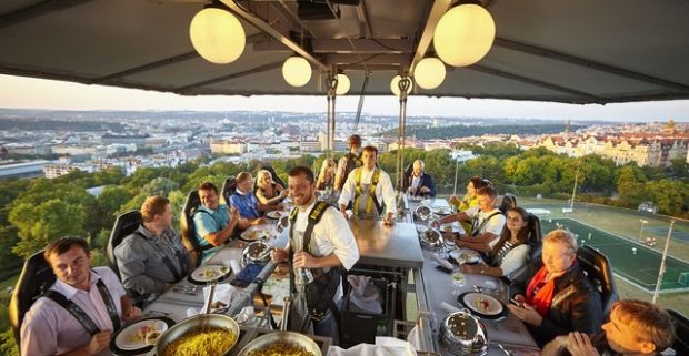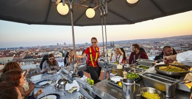 Vzrušujúca 4-chodová večera v oblakoch vo výške až 50 metrov s celou Prahou pod nohami.