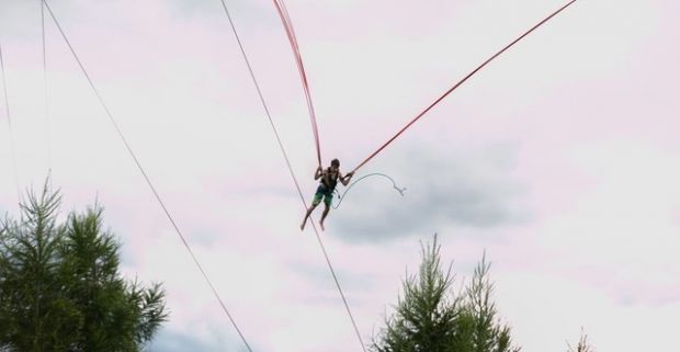Nechajte sa vystreliť na jedinom ľudskom katapulte Bungee Shot v…