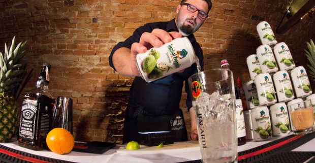 Kartón zdravých exotických nápojov – kokosová voda alebo graviolový džús.