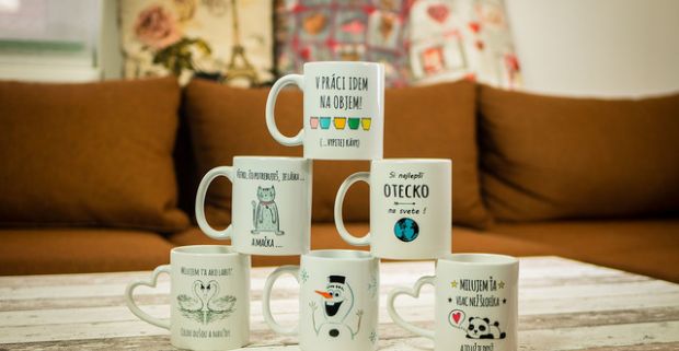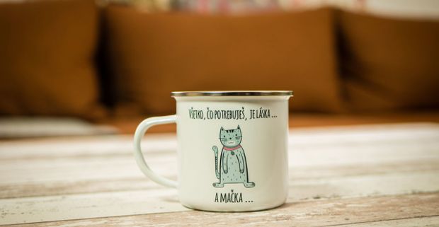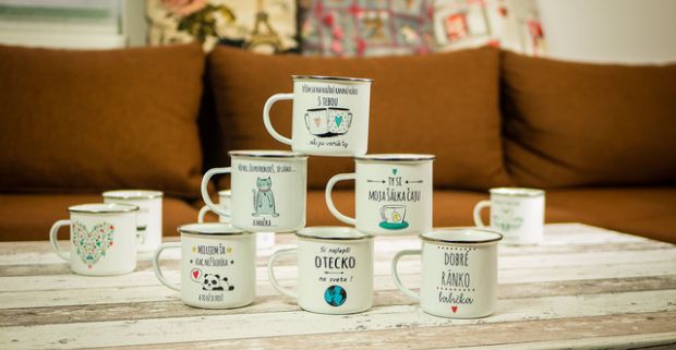 Originálne keramické hrnčeky alebo plecháčiky na popíjanie obľúbeného nápoja.