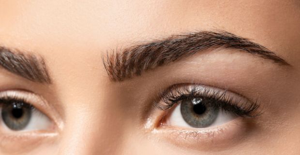 Zvodné a upravené obočie. Čepielková metóda úpravy obočia alebo zvýraznenie mihalníc.