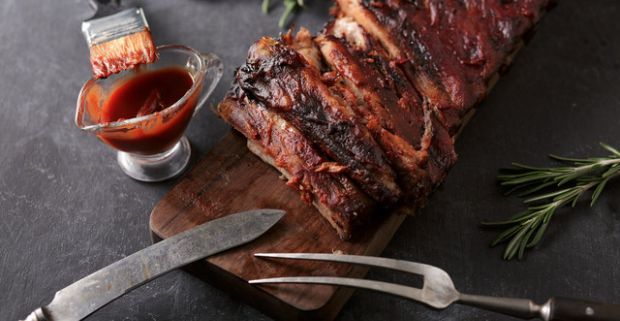 BBQ grilované rebierka s pečenými zemiakmi v obľúbenom Grill Bar…