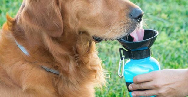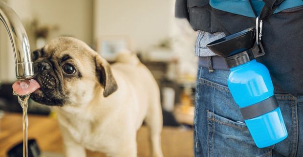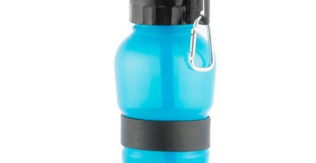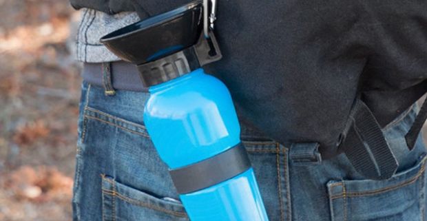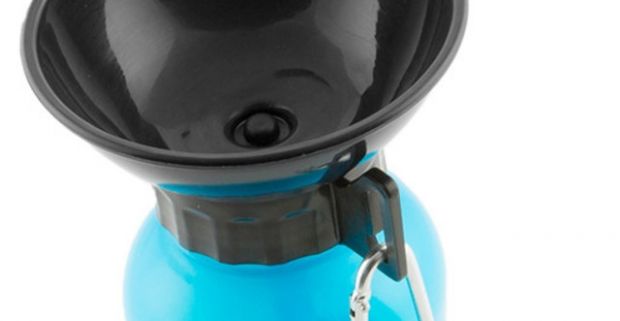Cestovná fľaška na vodu pre havkáčov s uzáverom v tvare misky. Moderný a funkčný dizajn.