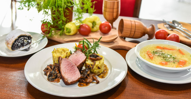 Tradičné 3-chodové menu pre 2 osoby so slepačím vývarom a domácou štrúdľou.