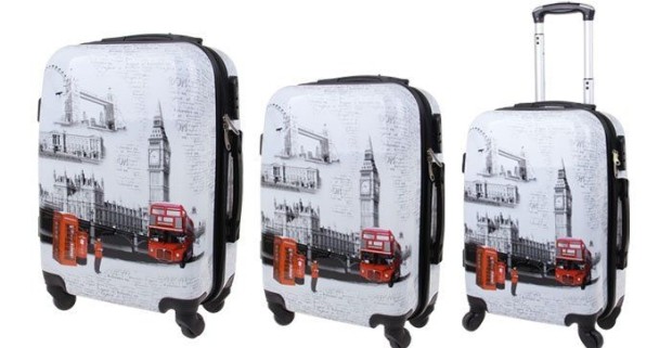Sada 3 škrupinových kufrov so zámkami, veľmi odolné proti nárazom, farebný motív: Big Ben.