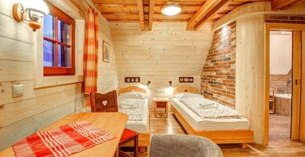 Malá Fatra: štýlový Penzión a drevenice Jánošíkov dvor s raňajkami a saunou.
