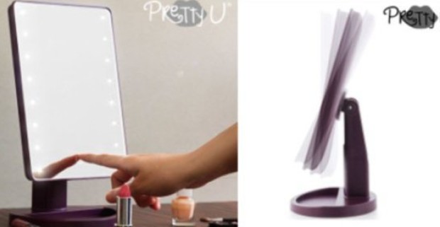 Stolné LED zrkadlo PRETTY U s atraktívnym dizajnom a 16 stále svietiacimi LED svetlami.