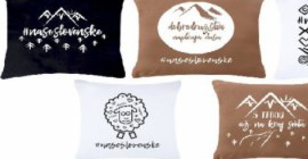 Bavlnená obliečka na vankúš so slovenským motívom a zapínaním na gombíky.