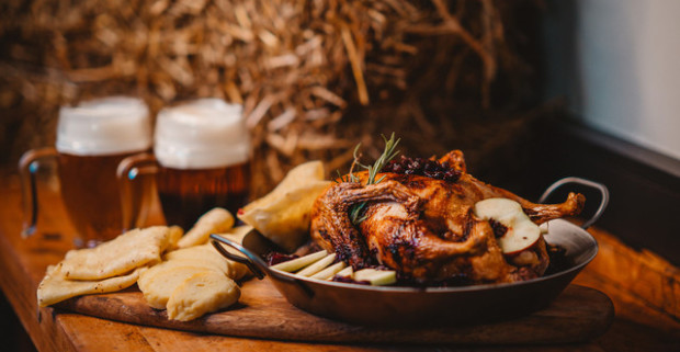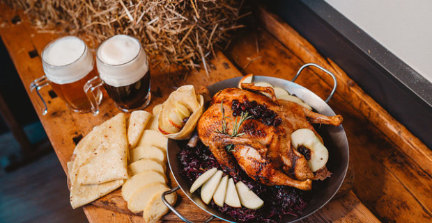 Pečená kačka pre štyroch s domácimi lokšami, kapustou a zemiakovou knedľou.