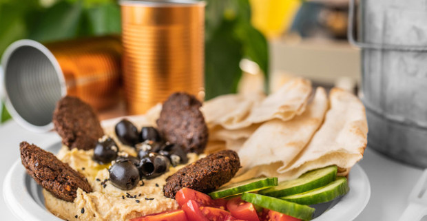 Hummus a falafel alebo rice bowl v Laksa & Grill v objekte Street Food & Cafe Possonium.