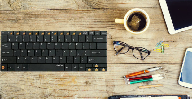 Ultra tenká Bluetooth klávesnica Rapoo E6100. Tenký a prenosný dizajn je skvelý pre cestovateľov