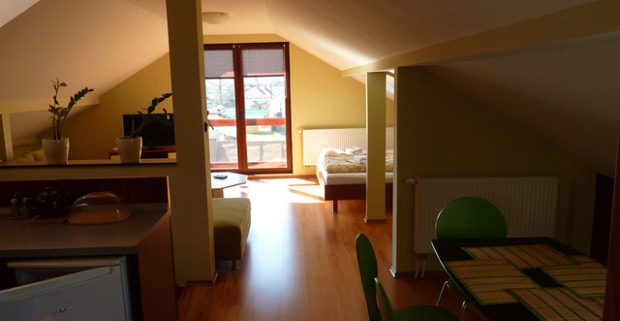 Ubytovanie pre dvoch v centre Červeného Kláštora a priamo pri lávke cez rieku Dunajec.