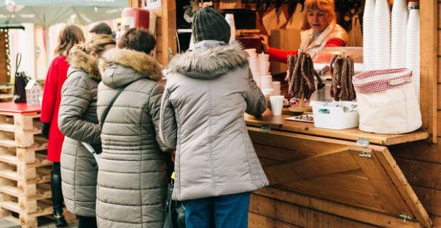 Pečená klobáska a vianočný punč na vianočných trhoch v Banskej…