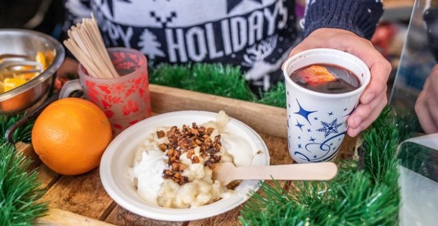 Vianočný punč alebo bryndzové halušky od Majstrov sveta v stánku na Hviezdoslavovom námestí.