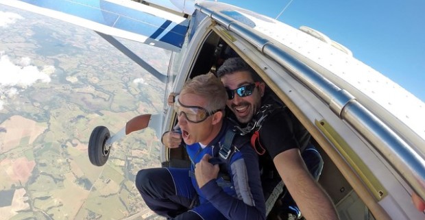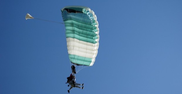Tandemový zoskok padákom z výšky až 3500 m z letiska Dubová pri Modre.